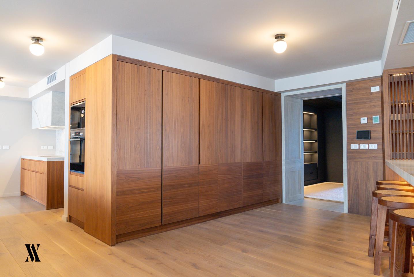 – Hall de roble negro, paredes , techos y muebles , Iluminado con Led